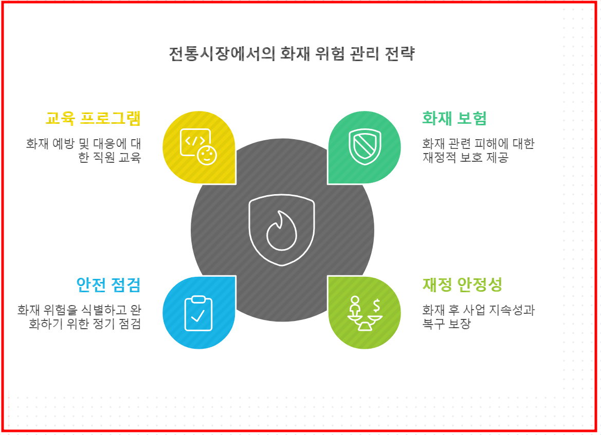 화재는 전통시장에서 자주 발생하는 재해 중 하나로, 큰 재산 피해를 초래할 수 있습니다. 화재공제를 통해 이러한 위험에 대비하세요.
