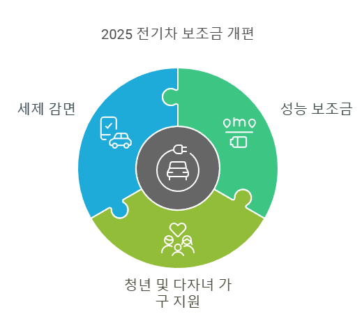 2025년 개편된 전기차 보조금 제도는 기술력이 우수한 전기차를 중심으로 보조금을 확대하고, 청년·다자녀 가구 및 다양한 세제 감면 혜택을 통해 전기차 구매를 보다 매력적인 선택지로 만들고 있습니다.