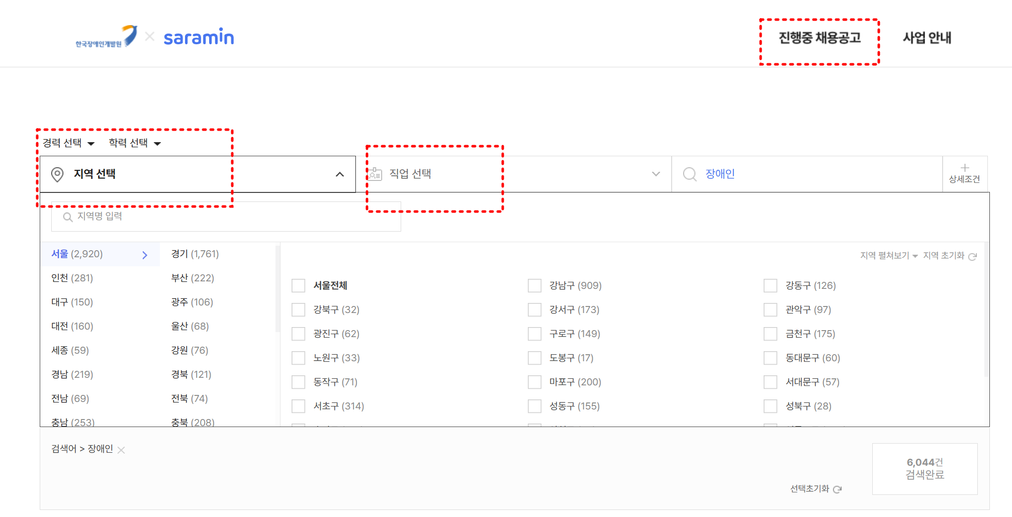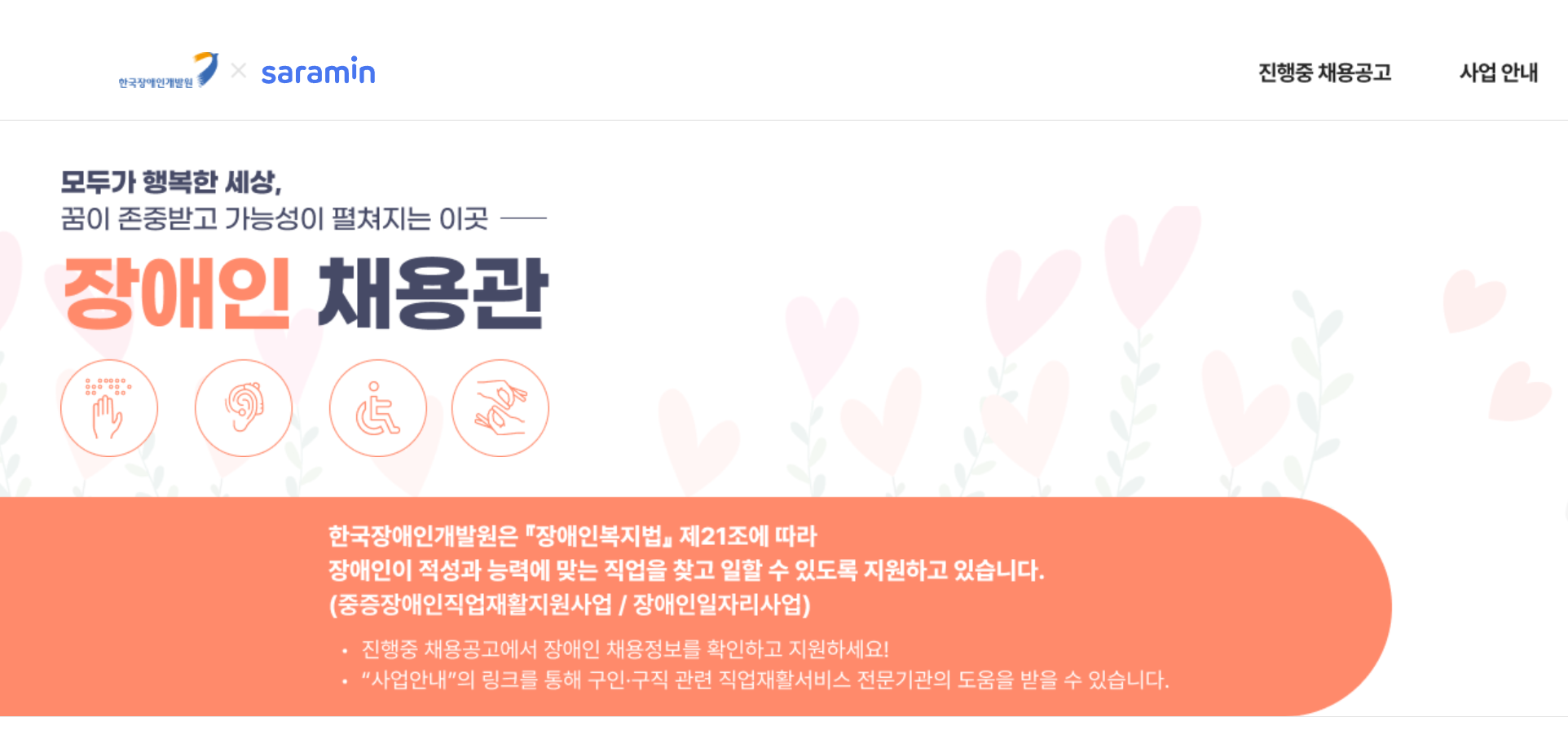 2. Saramin의 "한국장애인개발원 x 사람인 장애인 채용관" 활용법
